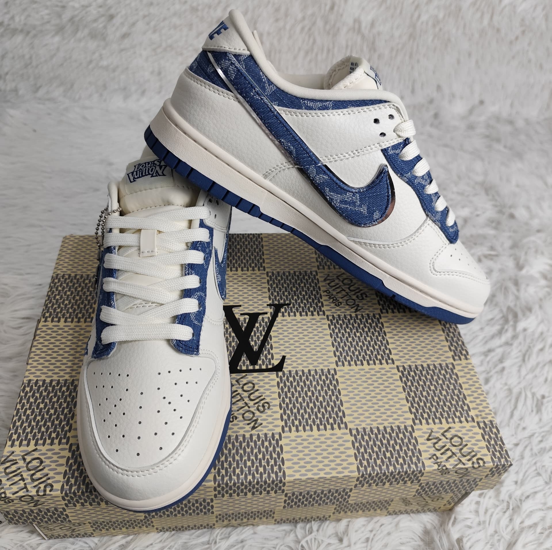 Deep Blue Denim Sneakers – Luxury Monogram-Style Trainer