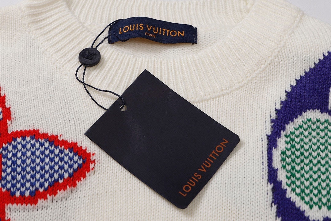 - Tags: #luxuryknitwear #multicolorsweater #monogramknit #runwayinspired #woolcrewneck #streetwearluxury #collectorpiece #exclusivedrop #artfashion #premiumapparel #virgilerastyle #highendstreetwear #designerinspired